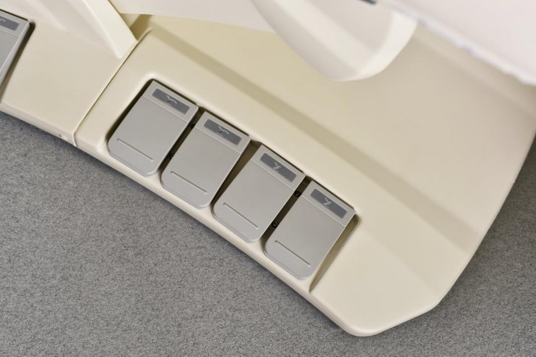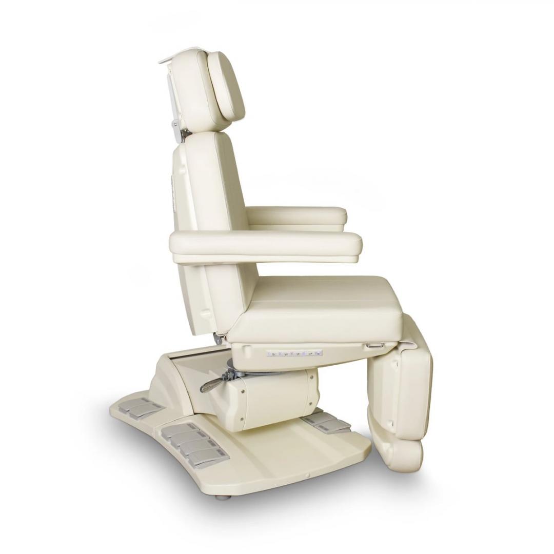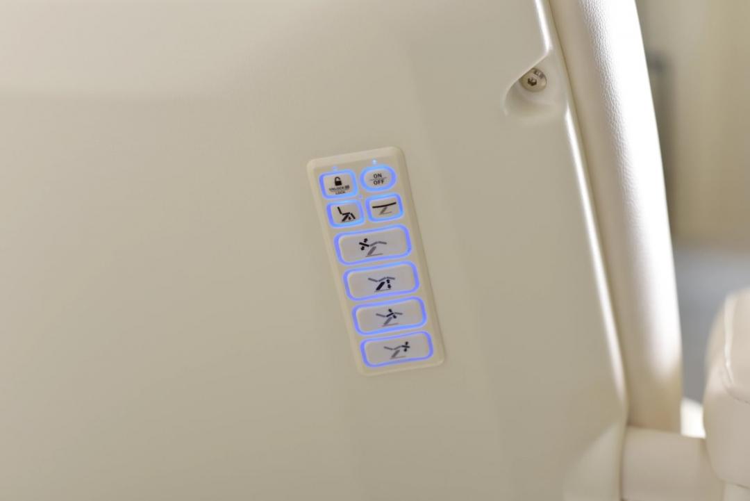 Ofrece rotación de 120º/-120º, posición horizontal, y función de retorno automático. Incorpora calefacción integrada y controles mediante botoneras y pedales, todo perfectamente integrados en la estructura.
